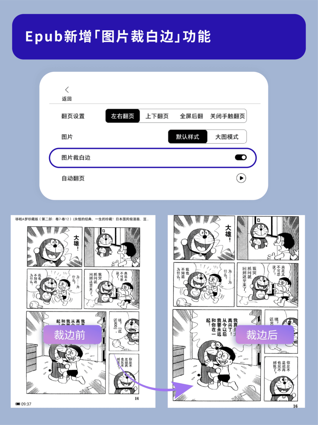 新增“图片裁白边”功能,阅读书籍时,页面多余留白区域将被裁切,阅读沉浸感提升