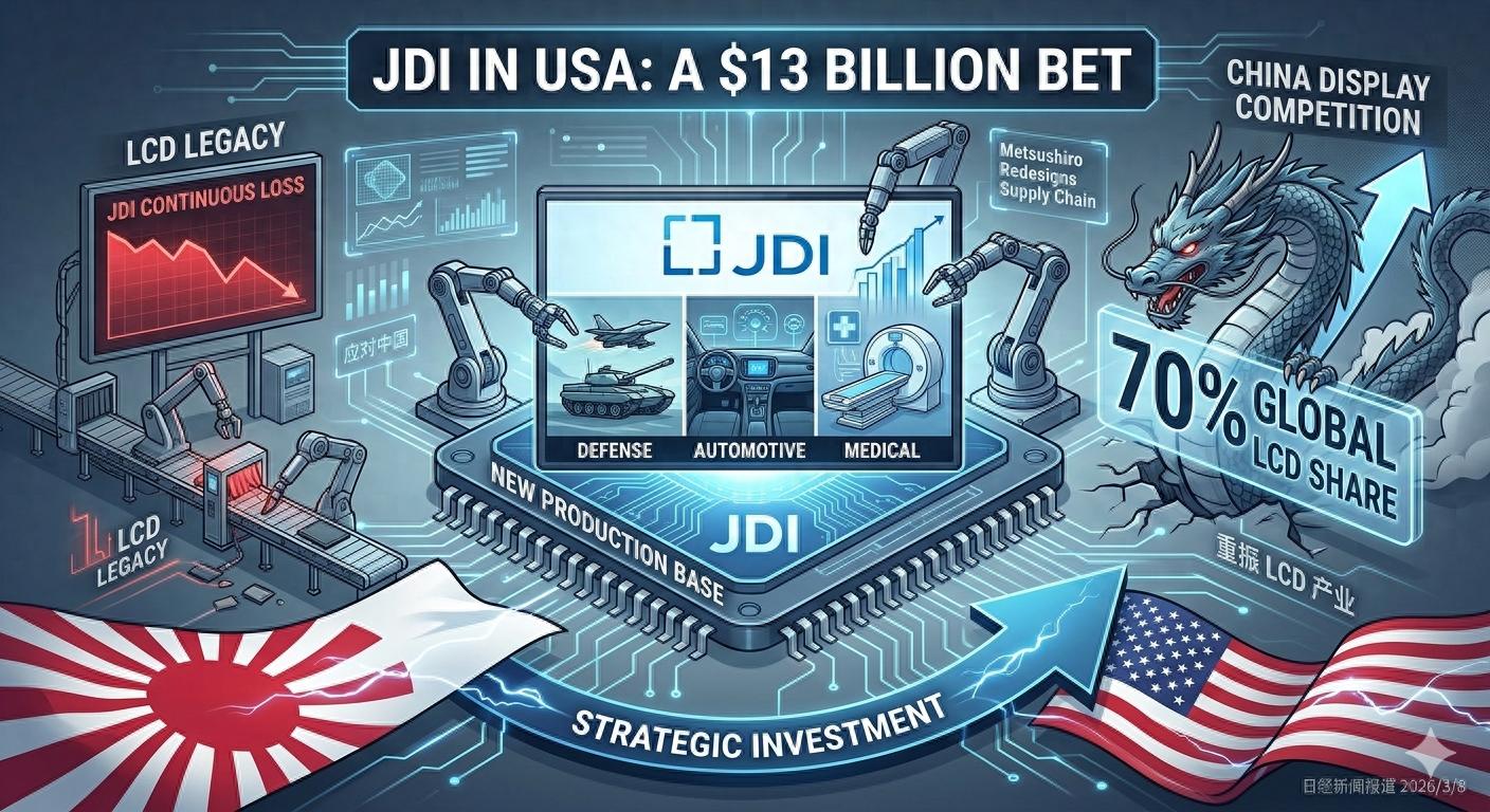 通过在美国本土生产,JDI 有望利用其在车载和医疗屏领域的技术积淀,进入美国的国防供应链,避开中国厂商在消费级市场的价格战。