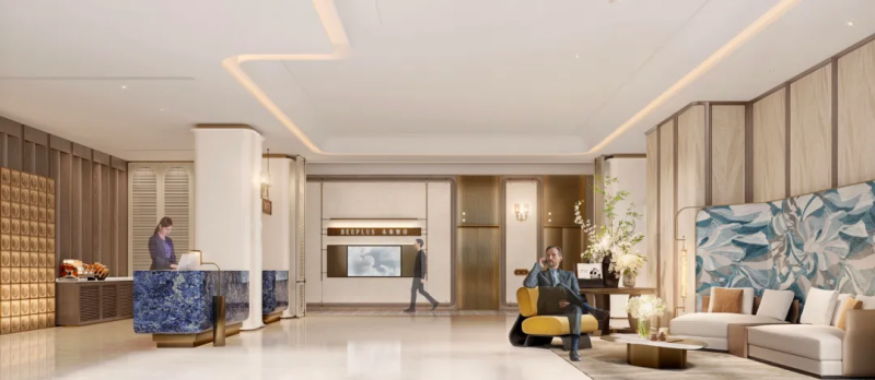 在设计理念上,项目以海洋风格为核心,彰显南通江海文化包容并蓄的特质,打造兼具国际视野、人文底蕴与开放气质的 “海派都会” 交互空间。通过融入海派设计符号,构建起知性与奢华、自然与摩登、生态与都会相融的特色产业载体。
